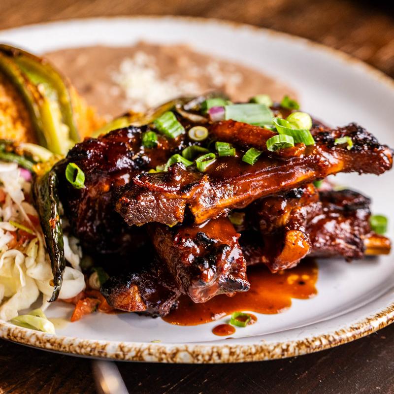 A sizzling platter of steak or chicken with grilled red and green bell peppers, onion, and mushrooms. Served with guacamole, sour cream, pico de gallo, cheese, Mexican rice, choice of beans, and tortillas.